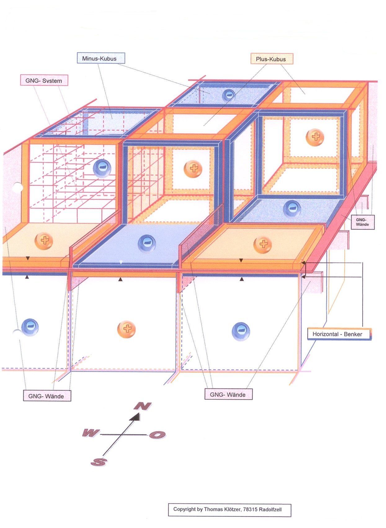 Benker-Kuben-System ca. 10 x 10 x 10 m.